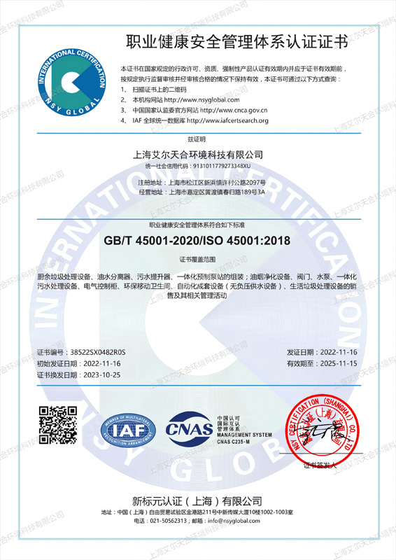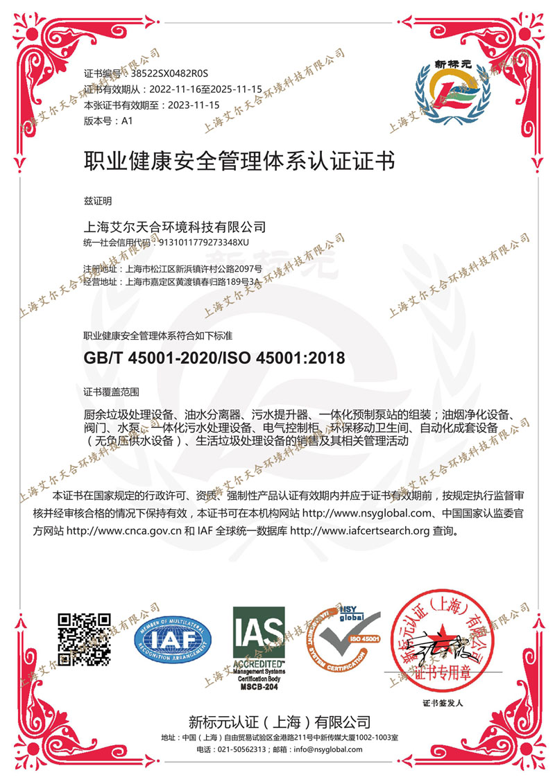 職業(yè)健康安全管理體系認(rèn)證證書 |