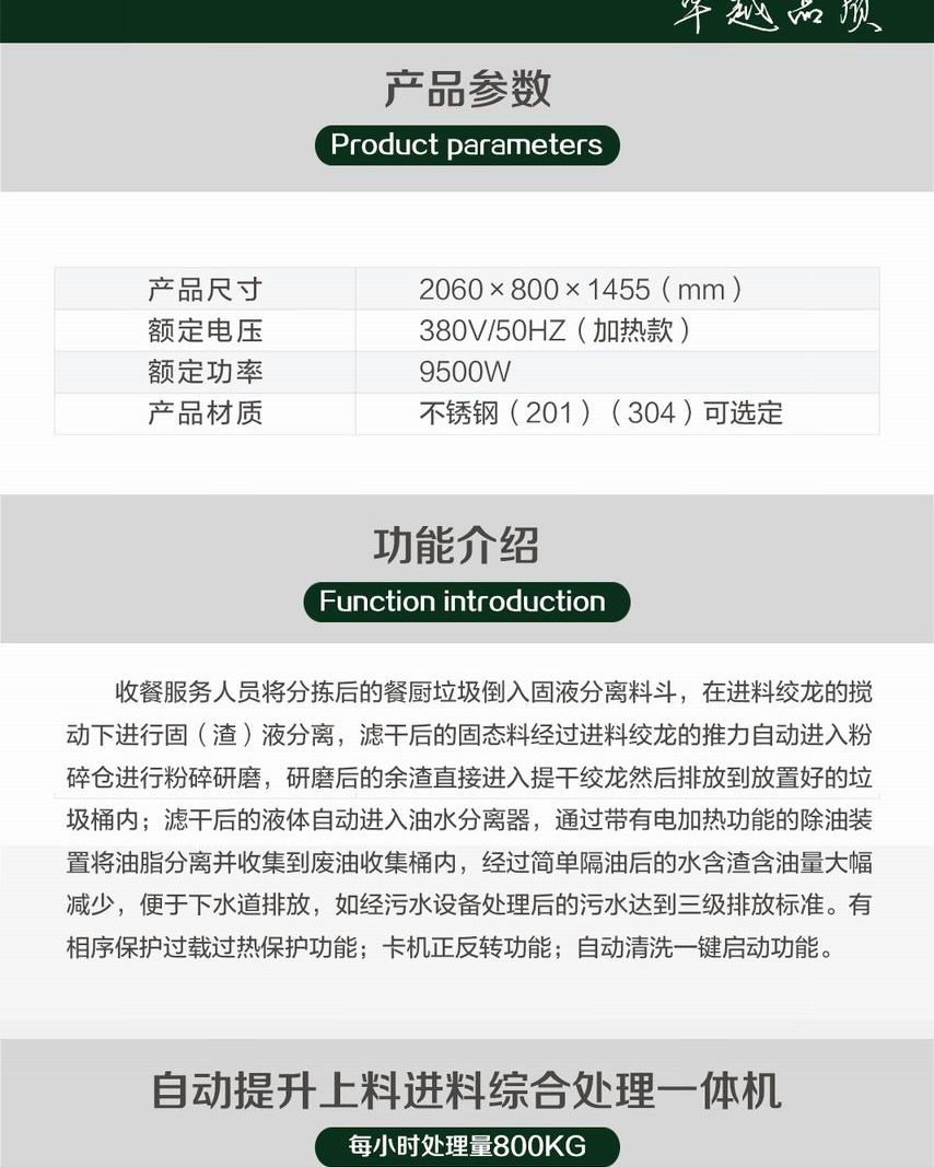 餐廚垃圾自動上料進料綜合處理一體機(提升機款)