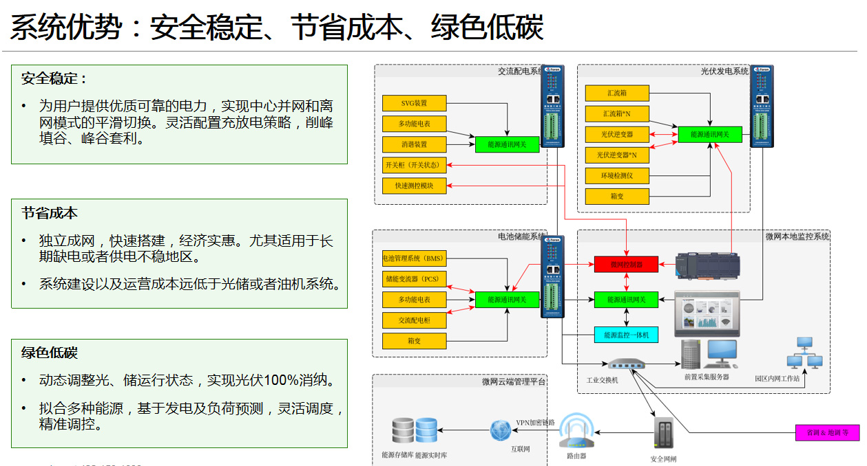 “微電網(wǎng)”是指由分布式發(fā)電機(jī)、儲(chǔ)能裝置、能量轉(zhuǎn)換裝置、相關(guān)負(fù)荷、監(jiān)測(cè)裝置和保護(hù)裝置組成的小型發(fā)電和配電系統(tǒng)。它是一個(gè)可以實(shí)現(xiàn)自我控制、保護(hù)和管理的分布式自主供電系統(tǒng)。它可以與外部集中式電網(wǎng)一起運(yùn)行,也可以單獨(dú)運(yùn)行。